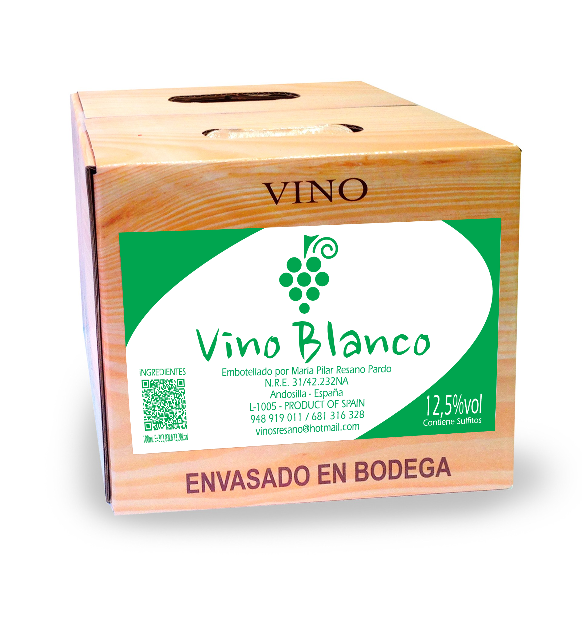 Vino BLANCO en envases de 5 litros.